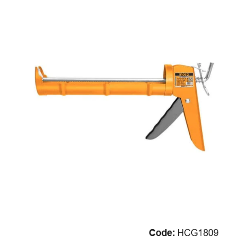 The Ingco Caulking Gun (Model HCG1809) measures 228.6 mm (9 inches) in length and has a 51 mm diameter. Constructed with a durable iron shank featuring teeth for better grip, this caulking gun is designed for easy application of sealants and adhesives. Its lightweight design ensures comfortable handling, making it an essential tool for both DIY projects and professional use.