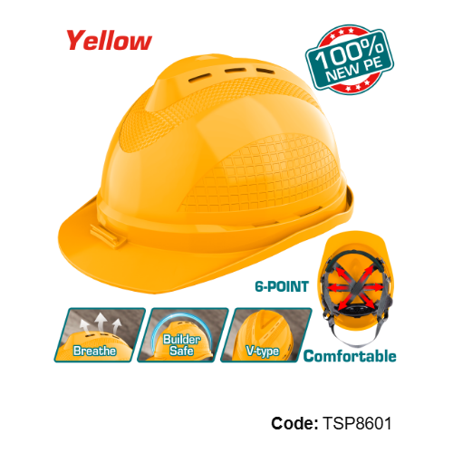 The tsp8601 safety helmet is designed to provide reliable head protection for construction sites, industrial environments, maintenance work, and outdoor projects. Made from 100% new pe material, this helmet delivers a durable and impact-resistant shell while maintaining a lightweight 380g build for extended comfort.